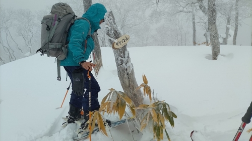 今回初めてゴーグルを着用した。山屋がゴーグルを装着するのはブリザード時だけという凝り固まった思いが拭えず、購入したもののザックに忍ばせ数年は使ってこなかった。今のゴーグルは雪面の凹凸もはっきり視認でき、優れものとの話を聞き、今更ながらではあるが、日の目を見なかったゴーグルを今回初めて使い、その威力を体感した。