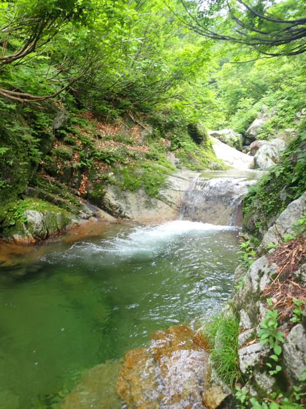 ・沢全体を通したすごいぬめり。すべてが滑って、3倍くらいの体力を消費している?ラバーシューズは良くないのか?フエルトが正解か?