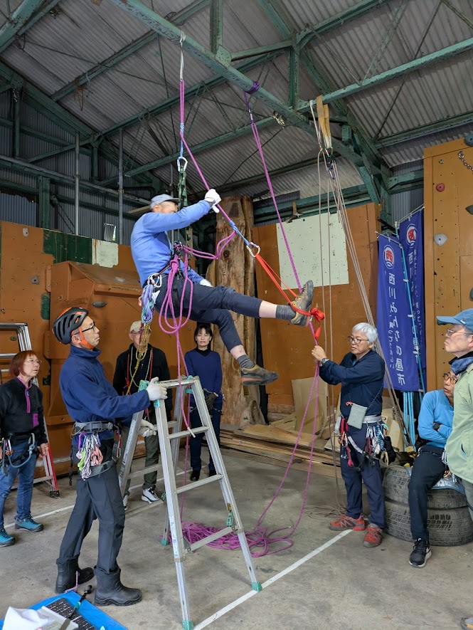 今年2月に亡くなったTルさんの指導のもと、レスキュートレーニングは毎年行われ、セルフレスキューの技術だけでなく、意識も連綿と会員に受け継がれてきた。他の訓練が中断となっても、この訓練だけでは継続していることは「わらじの仲間」の財産である。特に、今回行った救助の前のファーストエイドはどんな場面でも使われることがありうるものである。個人での反復訓練が望まれる。